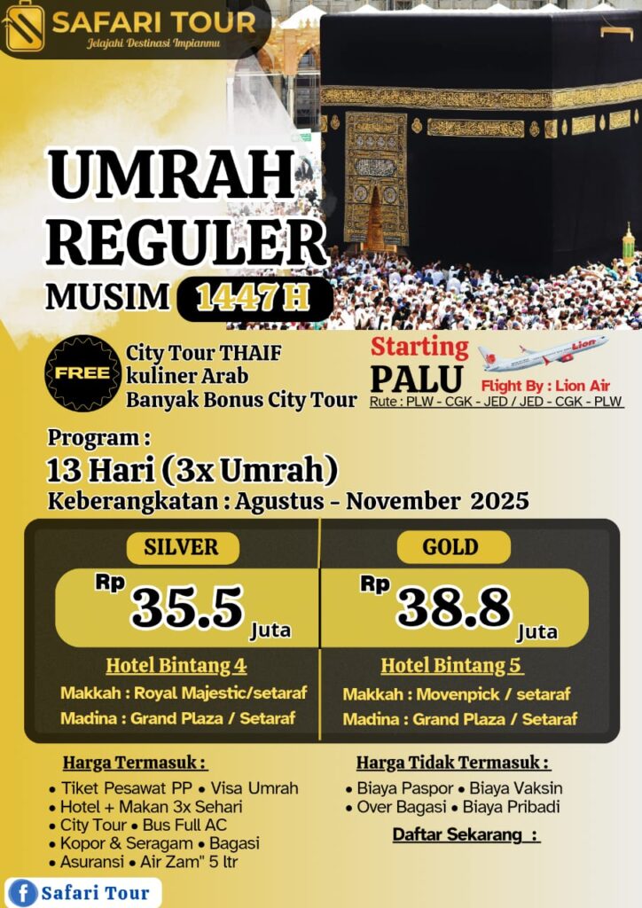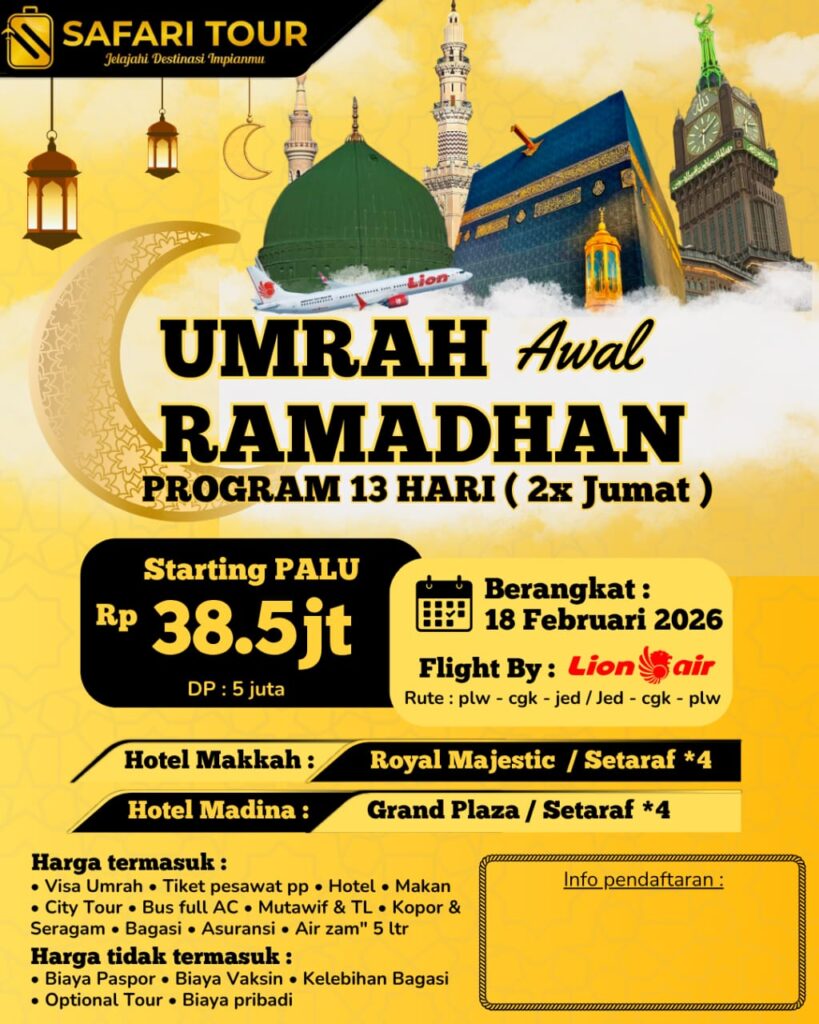Rasakan sensasi umrah plus perjalanan di Turkey dan berbagai trip gratis bersama Safari Tour. Harga mulai 39jutaan.